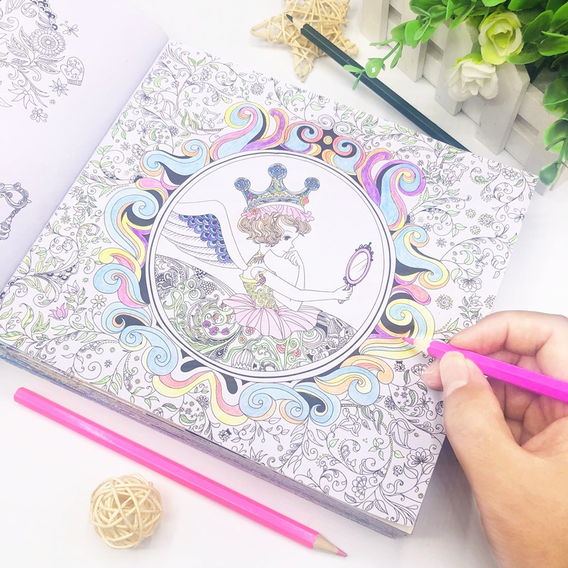 16 pages Princess Girls Coloring Sticker Book For kids Children coloriage pour Adult colouring Painting Drawing story color book